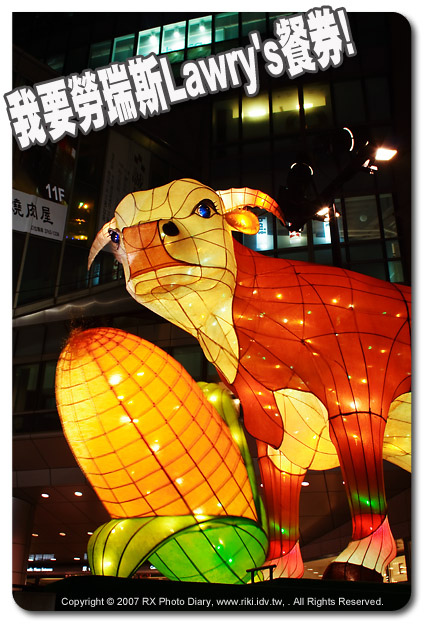 好的,我承認很低級去參加這個比賽,不過它的獎品真的很誘人,是我最愛的美國牛排耶,而且是京華城樓上的勞瑞斯牛排館,這家的牛排料理真是棒到不行,尤其是星期天早上來個Brunch(早午餐),那真是對自己最好的犒賞。 比賽很簡單就是拿相機拍牛花燈,想想今年也沒拍元宵燈會,Blog順便也應應景,那就跑一趟看看吧。到現場差點沒昏倒,整個設計雖然還不能算醜,不過花燈週遭都被圍起來,想變換攝影角度都很困難,更重要的一點... 天空又飄起雨來,就隨便拍個兩張就走人吧... 雖然我根本就是亂拍,還是要拜託大家幫我投票喔,感謝! 照片一:http://www.kingnet.com.tw/American_Beef/beefindex-ax.html?mesgid=43 照片二:http://www.kingnet.com.tw/American_Beef/beefindex-ax.html?mesgid=44 甚麼?首獎是Xbox 360跟iPod?都好...都好~ 有得吃比較實在啦! 尋找美國牛攝影比賽活動網站:http://www.kingnet.com.tw/American_Beef/ |