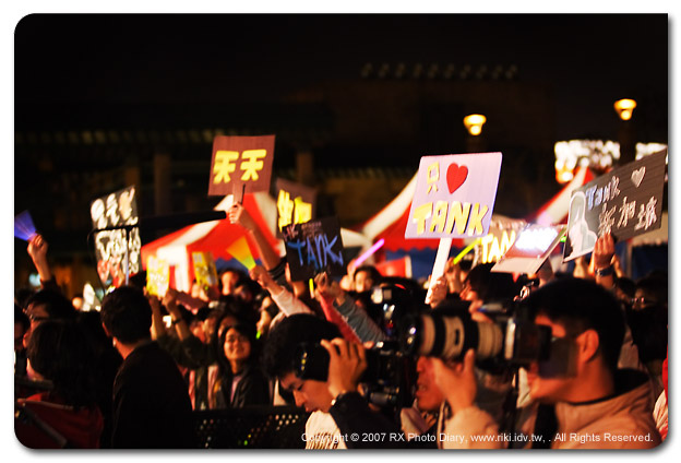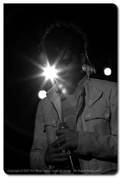 還是喜歡舞台攝影的感覺,冰冷的鐵架與幾盞聚光燈,握著麥克風接受台下的歡呼,似乎是很過癮的一件事,可是這種高高在上的機會,卻不是人人可以擁有的;想要成為鎂光燈下的焦點,登上那10階不到的舞台,過程歷練的辛苦是一定的,但等待機緣的煎熬才是難過核心。 週日台北縣民廣場的演出者,出身於民歌餐廳,原本只是唱片公司簽約的詞曲創作者,從沒想過有發片機會,一紙意外的唱片約誕生了一張好聽的專輯,去年首張「生存之道」在市場上大獲全勝,可是唱片業的不景氣總是令人忐忑,能夠再發片站在舞台上,除了歌手心存感激,現場的觀眾也應該有同樣的幸運感覺,這個好聲音並沒有被埋沒!挾著全新的創作專輯,去年那位唱著「給我妳的愛」的年輕人又回來囉。 踏上舞台這條漫長路,除了實力、機緣,還有永遠「Keep Fighting」,加油吧~ Tank! (未完待續) |