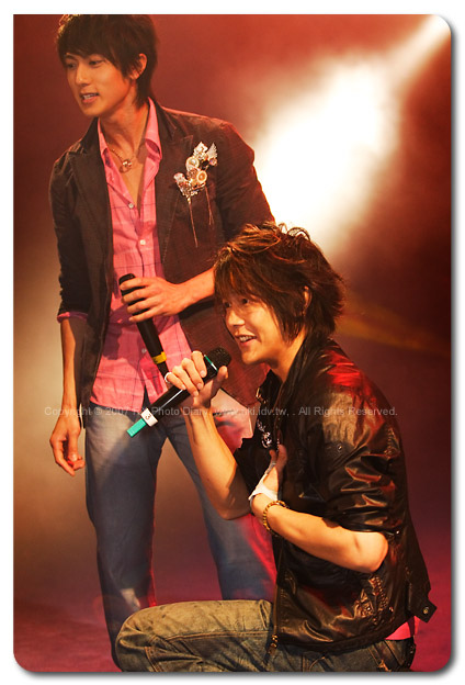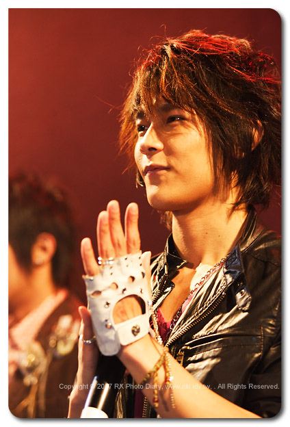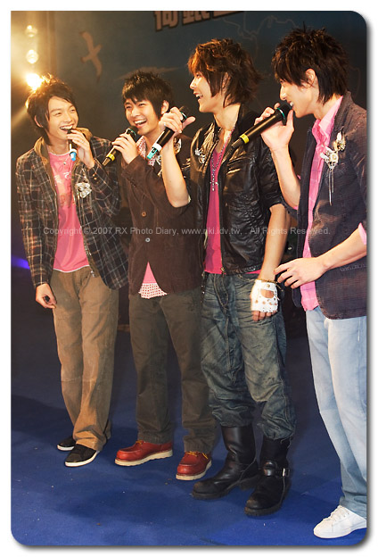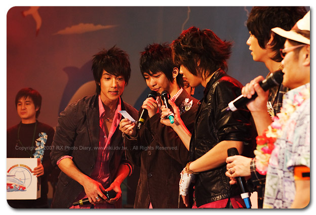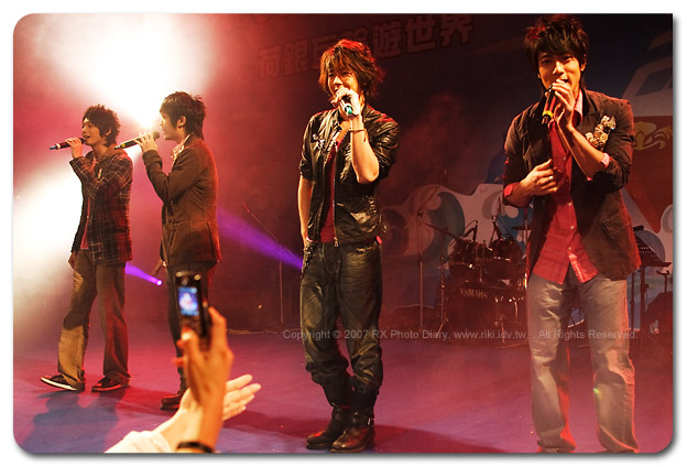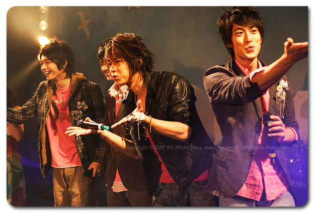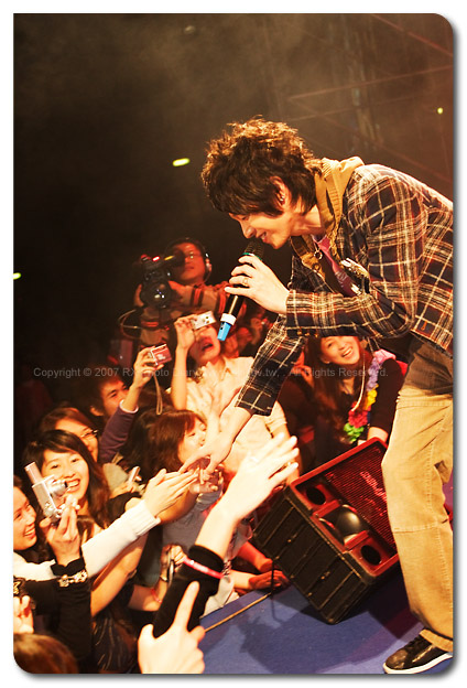 接到一個尾牙拍攝的case,心想沒看過新生代美型男團體現場演出,那就幫忙拍一下見識一下,反正表演時間不長。地點是世貿二管,邀請「飛輪海」演出的某外商銀行,先到會場看場地的我,環顧四週員工如同一般尾牙進行流程,表演台前空空盪盪,除了領獎人員上台外,幾乎都在位子上用餐。 當下慶幸這真是簡單的case,整個舞台區隨我移動,愛怎麼拍就怎麼拍,哪有比這個更簡單的呢?這念頭剛結束,主持人一介紹「飛輪海」出場,身後瞬間擠滿了該銀行女性員工,包圍整個演出舞台... OMG,我站穩拍照都很困難了,更甭說移動位置變化拍攝角度...。 看倌們,你們不知道有多恐怖,尤其是其中兩位團員跟群眾握手,瞬間唱面失控... 失控... 失控...,背上傳來的是一波波的壓力,後面的女性同胞又推又擠不說,還有誇張的蹲在一旁的少婦,拼命對著最靠近我的吳尊揮手直嚷嚷... 來!來!來! 感覺我好像戰地記者,冒著生命危險拍攝照片,好險只有表演三首歌曲......,下次不敢接這種case了,偶像的魅力真的不可小觑,「飛輪海」有多火?看照片中女性觀眾的表情就知道囉! |