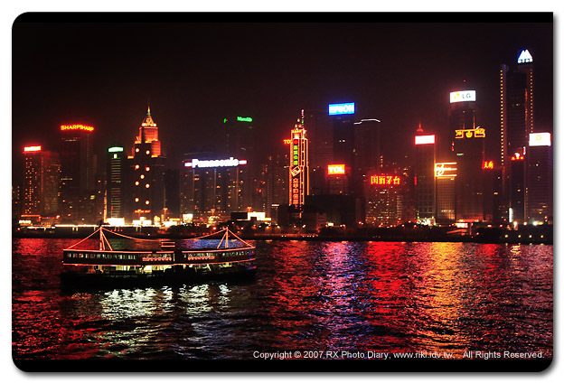 終於來到耶誕節香港之行的重點,搭乘遊艇夜遊香江維多利亞港,在船上過個不一樣的耶誕節。這也是爸媽的精心安排,全家團員齊聚一堂,不管是兒子女兒或是半子外孫,藉由這次機會留下美好的回憶。 耶誕夜當晚香港當局預估會有大批人潮集中幾個鬧區,於是實施交通管制不准車輛通行,我們一行人慢慢前往港口搭遊艇,聊天散步也別有一番風味,至於我當然是卯足勁拍照,不管是單眼350D、Powershot G7或是早已經過戶的IXY 750,特性不同、玩法也不同,如同三千粉黛各有各的樂趣。 整趟行程當然是溫馨又充實,家族的照片就省了,我們自己看就好~ 與各位分享那天的美景吧。 (待續 ... 下一篇又是吃的) |