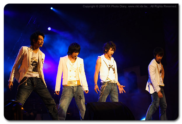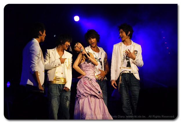 沒想到S.H.E.出道超過五年,也成為新人的師姐了﹝時間過得真快﹞,這次演唱會嘉賓中,同為華研唱片的Tank與飛輪海自然成為演唱會嘉賓的不二人選,一起爲三位師姐的演唱會跨刀造勢。 演唱會前半段上場的是《音樂小霸王 ─ Tank》,對他的印象是來自上次雲科大全運會的演出,台下的女學生對Tank歌曲都很熟悉,才讓我開始注意這位新人。聽了專輯後不得不佩服他的音樂實力,可聽性很高的一張專輯,其中一首與師姐Selina合唱「獨唱情歌」,更是演唱會必唱經典戲碼,尤其兩人手牽手深情對唱,更是攝影師一定得捕捉到的畫面。 接下來圍繞在Hebe師姐身邊的四位大男生就不用說了,從後方傳來的女性歌迷的尖叫可證明「飛輪海」實在紅到不像話,平均身高破180的少男團體,只形容他們是少女殺手是不夠的,筆者任教的夜間部學生,一堆熟女聽到「飛輪海」三個字也是激動不已... 好一個師奶殺手! 四首歌曲其中一半是與S.H.E合作演出,嘉賓的演出都與今天主題相關連,合情合理的節目安排讓演唱會加分,也給予藝人適度與休息與調度空間,值得鼓勵! |