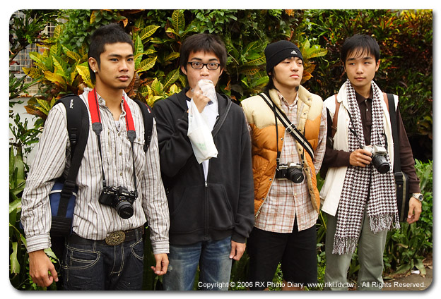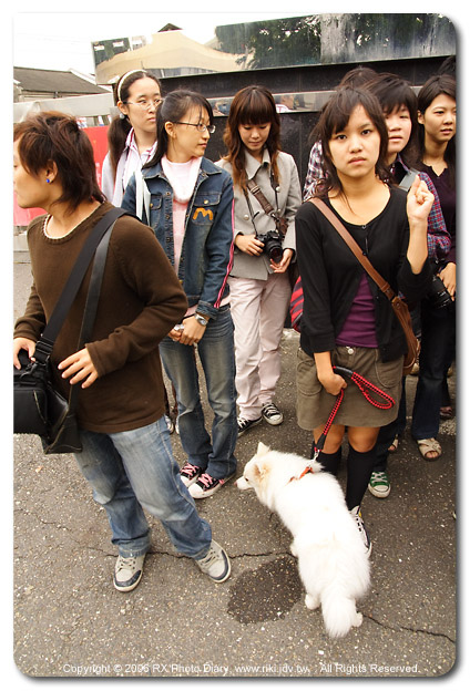 看到第一張照片別嚇到,這些人不是選舉活動走路工啦,而是RX攝影課又要辦外拍囉,因為順應學生堅持不想待在校園拍照的意願,決定來趟「虎尾糖廠」校外教學,也讓台北土包見識一下雲林縣在地文化。〔蘇縣長快點表揚我吧〕 不知道哪個人說《外拍視同遠足》...,這些小朋友還真的很認真實踐這句話,離開客運站來到糖廠,神經緊繃的老師馬上發現人數短少,經過數十通電話追蹤後,終於發現脫隊的這些仁兄跑去買早餐... 〔抱歉,集合時間太早囉〕,抓到現行犯的慣例就是《立正站好、拍照存證》,然後放上Blog讓大家唾棄! 一大群人外拍總是不好掌握狀況,除了不斷跟學生拌嘴互虧外,還要注意這群活寶還會出啥狀況。喔喔出現狀況了,我的線民立刻回報:「老師、老師,你看那邊有人在談心!」。真是會選約會場地啊,堤防上路燈下...,可惜現在日正當中而不是月光閃耀,上課中耶... 馬上叫學生們大聲合唱蘇打綠的小情歌,拆散這對河堤上的鴛鴦... 談心就算囉,班上怎出現了新同學,我的天啊!原來是一隻狗.... 。這位女同學家住虎尾,就順便帶愛犬來捧場上課,表示我的課程淺顯易懂、人畜互通...... 至於虎尾糖廠歷史背景為何?各位客倌認為我還有心思關心在地人文風情嗎? |