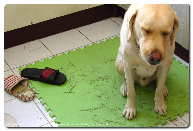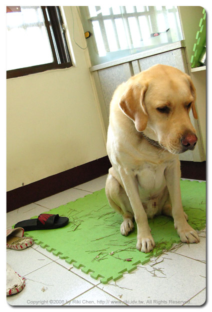 我認了... 還是去買拖鞋吧,拿這隻狗沒輒~ 上輩子欠你的! |