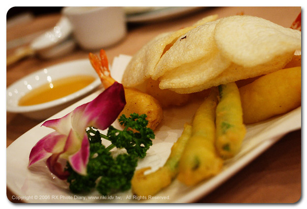 今天可是第一次見到女魔剎,也托福認識了好朋友美食專家Gary,在很愉悅的氣氛下開始了今天的午餐饗宴。 MSN上很聒噪的剎,面對菜單卻是出奇地安靜,嘟嚷著我只要吃蝦醬空心菜...蝦醬空心菜...蝦醬空心菜...,其他就交給Gary與我負責。其實與新朋友聚餐有很多好處,除了結緣之外,可以拓展用餐食譜也是一大利多,今天我刻意不點月亮蝦餅、檸檬魚...這些家庭聚餐熟面孔,讓達人Gary介紹推薦私房菜,果然點出了咖哩雞湯與辣炒石斑魚這兩道正點佳餚。客氣的Gary一直要我也點菜,看了菜單照片上美麗的泰式炸蝦,就用力地點下去了... 沒想到當天最難吃的就是這一道,根本就是炸熱狗... 麵衣無敵厚,難吃難吃啊~ 大雨滂沱,三人享用美味的四道泰式料理,滿足百分百~ 而且後續還有驚彩的法式下午茶喔。﹝待續﹞ |
