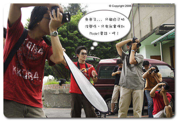 1. 專人指導、專業演出 選擇付費參加外拍活動當然是有所圖,有專人幫忙選擇適當地點、習慣在鏡頭面前表演的美麗模特兒,加上專人幫忙拿反光版,這一個如實驗室般的「安全」攝影環境,在讀者們技術還有待磨練的時候,實在是一個很理想的訓練環境,況且如果對於攝影有任何問題,現場活動指導是最好的諮詢老師喔。筆者好友卡文與Jian都是很棒的攝影指導喔,網友們如果有機會見到他們千萬不要輕易放過,盡量挖~~ 取經取經! |