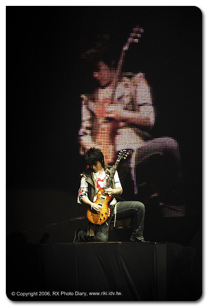王力宏退場,攝影記者也必須退回搖滾區後的攝影台上,靠望遠鏡頭來拼一吋長一吋強的現實攝影舞台,一切就盡人事囉~ 反正我那300mm拍不到,整場就只有那兩支600mm能拍囉~ 這個階段的攝影重點其實是等五月天在空橋上的演出,在這之前現場光線並不是很好~ 還有拿手提探照燈出來,拍照效果都不太好... 而且又遠!所以喘口氣等著團員到空橋上演出,再來捕捉他們的影像。 |