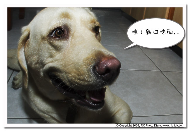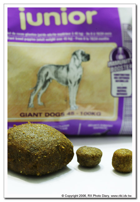對狗來說,應該沒有比吃的更重要的事情了... 布丁一天兩次放飯,飼料的消耗速度可以說是非常快的。之前都固定兩個品牌交換吃,那天去寵物店老闆特別介紹一種超級大顆粒的乾飼料,我聽了很有興趣,這樣可以避免這隻貪吃的狗囫圇吞,就很高興地買回去了... 這是給45-100公斤的狗專用飼料,想想差五公斤應該還好,就買回來給布丁吃吃看,而且針對關節有強化營養,對布丁很需要的...。 打開包裝一看,哇賽!真正有夠大顆,一顆大概是之前飼料的八倍大。裝在碗裡給布丁試試,看它首度一次吃一顆細嚼慢嚥,吃飯步調怎個慢了下來,真不錯~ 真不錯~ 況且現在流行「慢活」,就讓我們從吃飯開始學習新生活吧! |