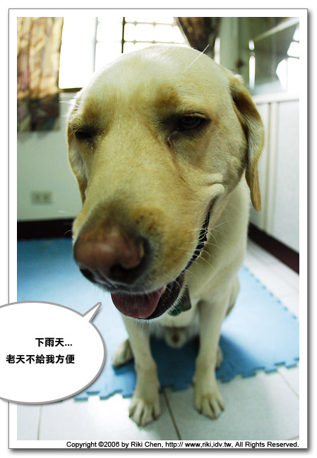 以前總是很驕傲的說我們家布丁最貼心,下雨天會乖乖在陽台解決「方便之事」,結果沒想到這隻狗換個地方卻沒有換腦袋,我好不容易找到有一間有陽台宿舍,沒想到丁哥完全不領情,就是不肯在陽台方便... 好囉,平常沒事就帶老大您上街頭晃晃,灌溉一下南台灣的土地﹝順便澄清一下,中村夫婦看到的那幾坨,都不是我們家的!﹞,反正南台灣天天陽光普照,就順著丁哥的意思吧。 結果,要命的珍珠颱風來訪,下雨... 這怎辦?這下子丁哥要如何解決啊?怎辦~ 涼拌囉... 除了等待還能怎樣,我抓緊風雨之間的小空檔,趕緊帶丁哥出門解放一下,身上髒兮兮還能怎辦,苦命的老爸拼命擦囉。 唉,老天爺你嗎幫幫忙,我回台北時候再下雨啦.... 本來這週目的是拍荷花的,閃燈也沒帶拍照效果不太好~ 布丁大爺您就多多包涵囉 |