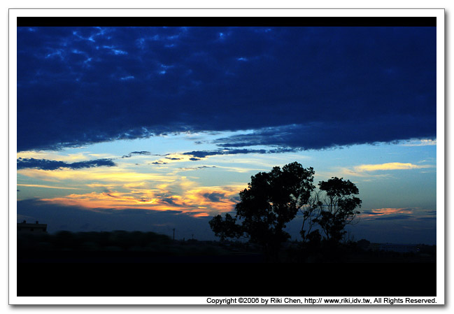 陰鬱了好久的天氣終於放晴,五月一日勞動節天際線上終於不再是白茫茫,而是湛藍的天與層次分明的雲,很舒服的一天~ 台北有人在抗議爭取基本工作權,雲林的我帶著布丁出門走走,台灣南北都不放棄這難得的好天氣,享受陽光帶來的能量。 不僅白天美,今天的夜色也美得令人驚豔,在高速公路上看著兩側晚霞,好特別的顏色啊...雖然時速高達100KM~ 擅長「單手操盤」的本人還是搖下車窗用350D拍了張照片,讓這完美的一天有個美麗的句點。 您今天做了甚麼事呢?不妨在留言板寫下來,未來在某個陰雨的天氣,可以回來這裡提領今天的陽光心情。 |
