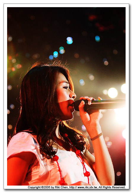 唉... 本來準備主拍的對象是張韶涵... 可是開演前確認一下名單,怎換成了許慧欣,這... 金牛座不喜歡陣前換將,心情馬上跌到谷底... 老實說... 「選手之夜」跟歌手有甚麼關係?基本上是一點關係都沒有,大會還是安排了一些歌手來唱唱歌,讓整個場子熱鬧一點。 拍了幾次舞台,這次的燈光應該算是最不Pro的~ 畢竟不是專業的演唱會場地,前半小時還是阿扁演講、老杜致詞的場合,對它的燈光只能要求「打亮」就好囉... 還是要偷偷罵一下,整場燈光顏色都偏紅,真Orz... 來了幾位歌手都算是實力派的,尤其是李聖傑、江美琪以及開完刀的吳克群,其實聽這些人唱歌還真是一種享受,雖然都是放卡拉帶有點陽春的感覺,整體來說瑕不掩瑜啦。 |
