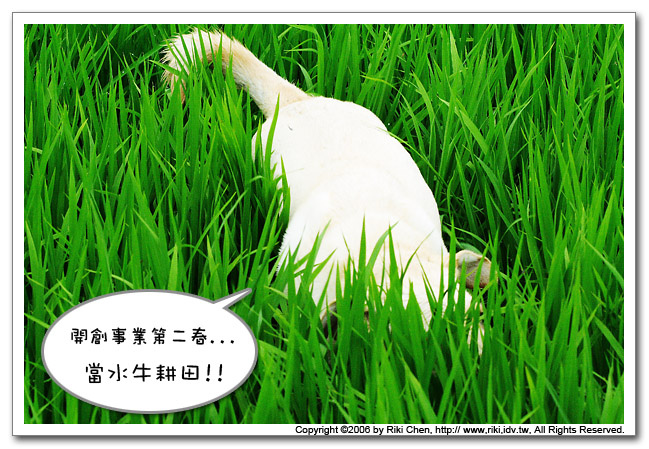 星期六與LL媽、JOE一起到草屯「洪老師桑椹園」採桑椹。這家桑椹園可是大有來頭,這是養育出LL媽─洪徽徽,以及洪大洋、洪大喬醫師檔兄弟的洪老師夫婦,退休後為打發時間所開發的一塊地。 原本只是玩票性質的種些花草,完成了一片令人讚嘆的花園後,每天拈花惹草的兩夫妻,大概是聽到農會大力推廣桑椹,突然又燃起興趣,馬上將花園擴建成桑椹園。洪老師夫妻是園藝高手,桑椹越種越多... 去年收穫時多到找不到人幫忙,兩夫妻累到閃到腰。這事情傳到台北LL媽姐弟耳中,對於老爸老媽這種玩過頭的行為非常擔心,立刻驅車南下... 找了台推土機剷平一半桑椹!LL媽每次講到這段往事就很激動,似乎是暗示筆者一定要寫出來,準備要報名孝行楷模獎,哈哈哈。 大概12點左右到達桑椹園,好客的洪老師準備了一桌桑椹料理來款待我們這群人,有桑椹米粉、桑椹香腸... 更正一下,是桑椹汁配米粉、桑椹酒佐香腸,棒!吃完之後的重頭戲當然是採桑椹囉,不過吃飽飽吹著鄉間微風懶得動,這種偉大工作就交給JOE大師去辦,我跟LL媽還有大洋、大喬兄弟有八卦要互相交換同步一下~ 喝著桑椹酒在花園中賞花論八卦,真是快意人生啊。 當天除了吃飯採果,更有想像不到的驚奇表演─「拉布拉多耕田秀」。聽到這名詞有沒有很興奮?這是一定要的啦,也只有在洪老師桑椹園才可以見到的表演,那就是... 本人的笨狗,來到鄉間太興奮,以為自己是水牛,跳到稻田中狂奔「犁田」... 看到全身髒兮兮的布丁,真想罵髒話! |