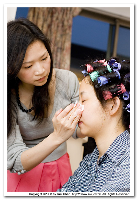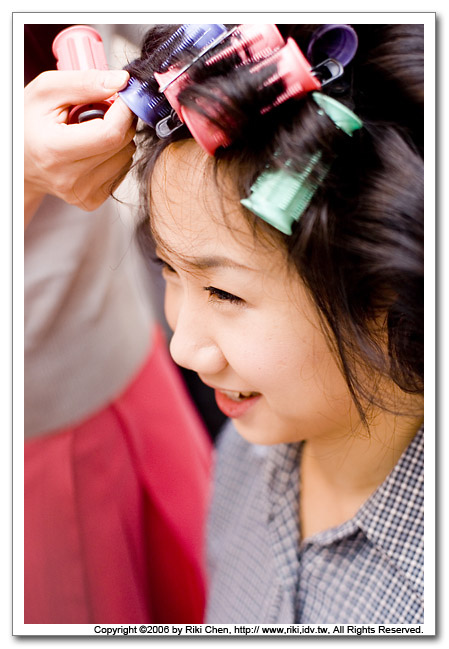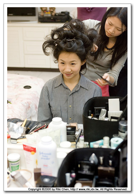 第一次聽到「新娘秘書」這個名詞,以為是婚禮當天跟在新娘旁邊提醒流程的... 後來才知道原來就是「造型師」!這樣下去我會被當成落伍的怪伯伯,所以現在天天收看《女人我最大》,補充吸收流行元素... 聽到小亭要來當玟君的新娘秘書倒是嚇了一跳,她可是我大妹─金太郎媽的高中同學耶,還記得她們姐妹淘畢業時我還去幫忙拍照耶,一別就是好幾年耶~ 後來都是從大妹以及Stacy聊天中才知道小亭結婚、生子還有去學習當新娘秘書的種種... 最近竟然在水梨哥─Tony的網站上,知道小亭已經執業的消息。 結婚當天... 敬業的小亭四點多就到我家了,我的天啊!網友們請看第一張照片天色還是湛藍,就知道當天有多「早」... 苦命的哥哥也得拼老命的從床上爬起來,然後還要煎熬一個多小時早餐店才開門,打發時間就來看小亭工作的樣子吧。 在小亭巧手打理下,前晚緊張熬夜的玟君臉色越來越好~ 哈哈,看她的笑容也知道對小亭的手藝超滿意的,在結束「包租婆」的髮捲造型後,整個新娘的味道就出來了。化妝/造型真是一門艱深的學問,看來又多看Kevin & Tony老師的節目囉~ 哇哈哈 小亭,真厲害~ 有妳的! |