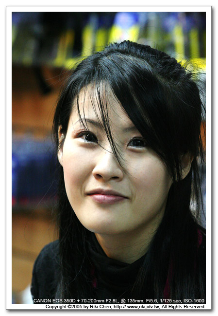 誰這樣大的面子,可以讓RX與JOE一起出動,陪著公子逛相機店買東西?當然只有我們的好朋友-仁心仁術的洪大喬醫師囉~ 繼上次買入35mm F1.4L的豪舉後,慣用底片機的洪醫生禁不起兩個損友的疲勞轟炸,終於決定投入數位攝影世界,買台最便宜的CANON 350D讓RX跟JOE閉嘴... 就這樣~ 我們來到專門賣平行輸入品的「e-What」,也就是之前的億華數位。 由於先前功課有做足,來到店裡面也沒多說,洪醫生搬出他的大三元鏡頭直接測試350D是否有移焦問題,測了半天滿頭大汗... JOE大師忍不住把100mm Marco鏡拿出來,用這隻最嚴苛的鏡頭幫忙測試,大師出手果然馬上驗證~ 這台準得很!!! 「e-What」著名的是有美麗親切的售貨小姐,邊賣相機還可以邊測試相機人像表現... 洪醫生把相機拿給我,要我幫他測試看看「小白」(EF 70-200mm F2.8L)在這台相機上的表現,二話不說操起傢伙就拍拍看囉,網友可以看底下的測試照片,ISO-1600高感光度的表現沒話講,雖然只是自然光源,但人像表現還是可圈可點,對焦點在小姐左眼上,機身螢幕上的銳利度與顏色都讓我覺得十分滿意,通過RX與JOE的測試後,洪醫生就付錢走人大功告成~ 說真的,這台350D真的非常精巧,功能也相當完整,非常推薦給攝影入門者使用,或者拿來當備用機~ 真是心動喔......好癢 好癢~~ |