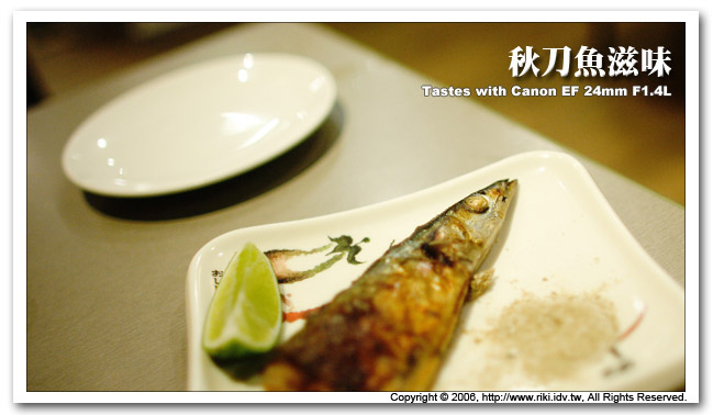 先不管這美到了極點的散景,那這鏡頭與秋刀魚的關係在哪裡?其實喔,是這銘鏡的主人為了慶祝35mm入手,特地邀請了我一起前往博愛路附近一家知名日本料理店,作東分享入手新鏡與心境啊。 看到這裡,疑點二又出來了,這顆鏡頭的畫質如何呢?說真的我其實不是很關心,因為不是我的也不會借我...,重點是這些照片都是我用Canon EF 24mm F1.4L拍出來的,藉此敗家記來展現我的愛鏡實力。哈...哈... |