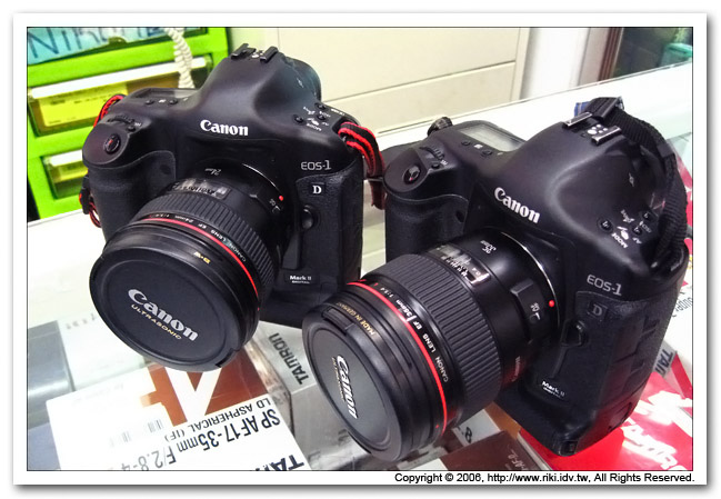 那這張該死的照片又是啥?這是兩台Canon EOS-1D MarkII分別接上24mm F1.4L與35mm F1.4L的紀念照片,由本人隨身機Canon IXY-700拍下來的畫面,拍攝當時引起知名相機器材店內部一陣騷動,店內顧客紛紛提出合照要求....... |