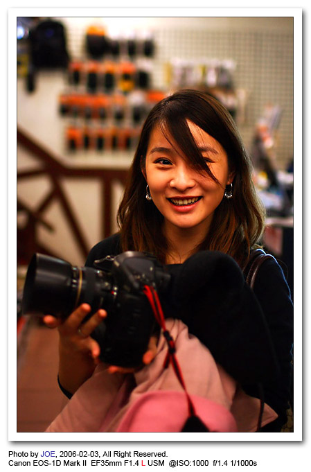 | 這位美麗的小姐很興奮的拿著我的相機要求合照,這個時刻當然由新鏡頭出馬表現一下囉,掌鏡者為剛讓44張小朋友陣亡的元兇。晚上MSN傳來的照片果然濃郁到嚇人,與24mm F1.4L有不同的風味,近期內將會有這兩支鏡頭的成果分享,敬請期待。 |