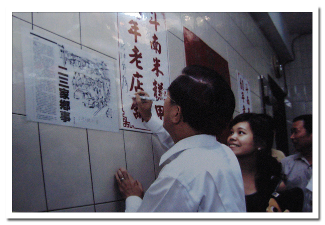 唉啊,原來是我們陳水扁大總統有背書的店耶~ 吃飯無關政治,如果難吃還可以叫總統來把簽名收回啦,哼哼~ 這家店的米糕其實不錯吃,不過我習慣台北米糕較甜的紅醬吃法,對這裡以肉燥、蒜泥搭配米糕的方式就不太適應囉,呵呵~ 北部吃法啦 ^_^、一邊一味,呵呵~~ |