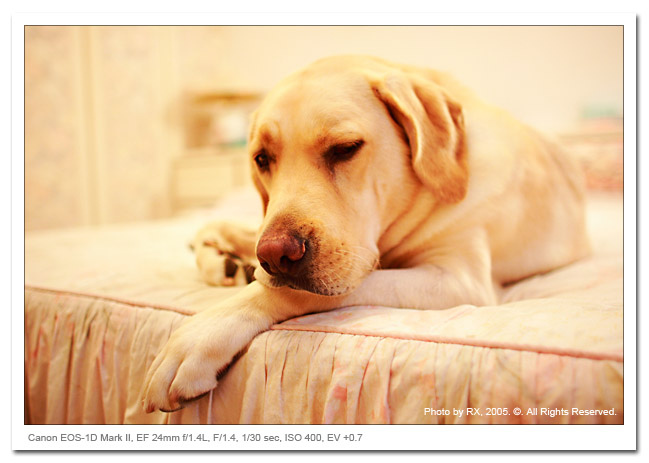狗真的不能太寵,布丁已經無法無天了~~ 他已經認為擁有30%我床的股份,所以躺一下是理所當然的,如果沒有比較嚴厲的語氣斥責,他是不會下來的。您看,相機都拿到眼前來拍了,他還是無所謂的瞇著眼睛享受彈簧床的溫暖....