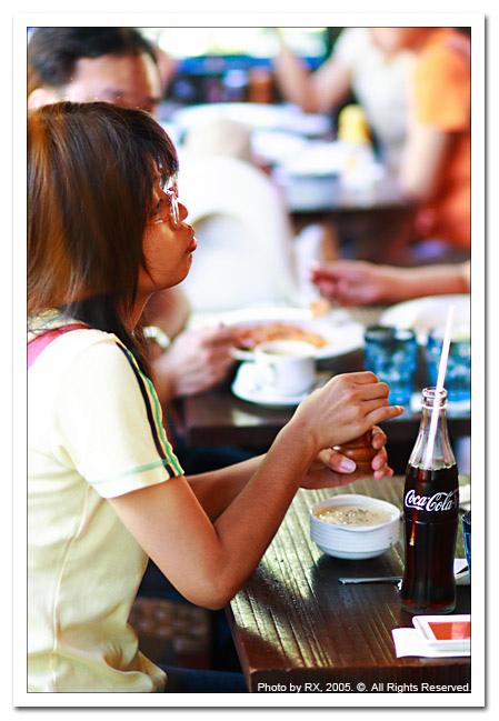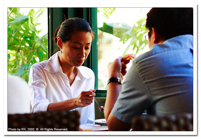 青菜很重要喔,大雞肉凱薩沙拉這是必點的一道菜,清涼爽口搭配培根與起司的香味~ 讚。順手拍了一下,哇賽~ 後面的散景(Boken)真不錯,跟我其他鏡頭的味道不一樣喔,以後要多用多用,呵呵。