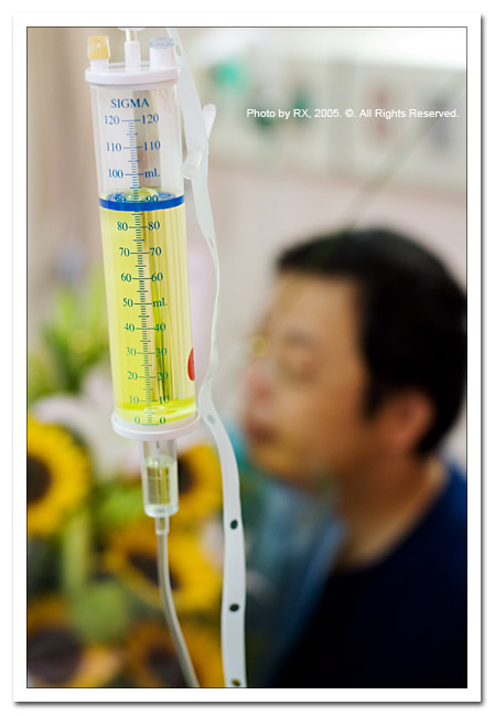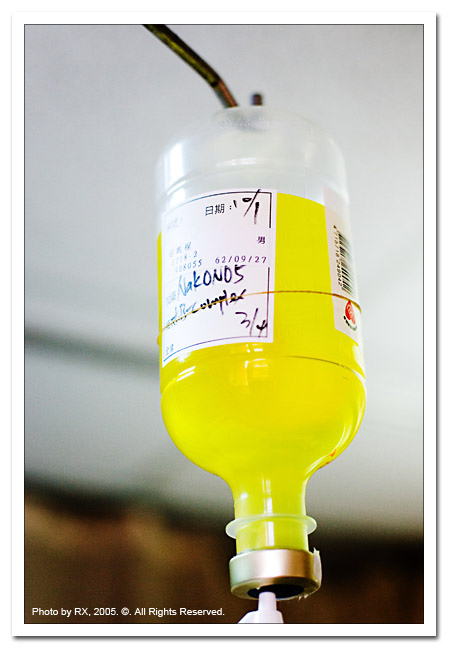 離開前望著黃色點滴瓶,延伸到手臂上的長長膠管,綁住了不受羈絆的JOE於病房中,一星期軟禁過去了... 相信來網站的朋友一定跟我一樣祈禱大師JOE早日出院,早日享受布魯喬的精采照片。