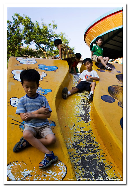 拿起相機想捕捉一下天真無邪的小孩溜滑梯歡樂神情,沒想到竟然遇到老氣橫修的小老頭,殘念喔~~~