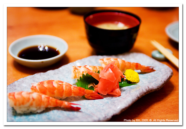 記憶中到日本料理店用餐開始於孩提時候,那時候最愛吃的就是蝦壽司,因為它是熟的... 對於生魚片一向敬謝不敏的我,30幾年過去了,我能吃的東西就是那幾樣,除了敢吃芥茉之外,一點長進都沒有...