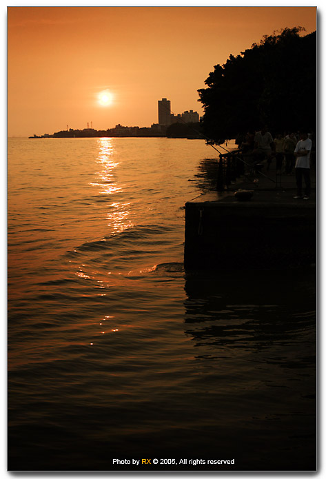 夕陽要隱藏在水平面下了,此時的色溫又逐漸轉成藍色,按下今天最後ㄧ次快門,也要準備打到回府囉,時光流逝,我只慶幸我懂得用相機留住回憶。