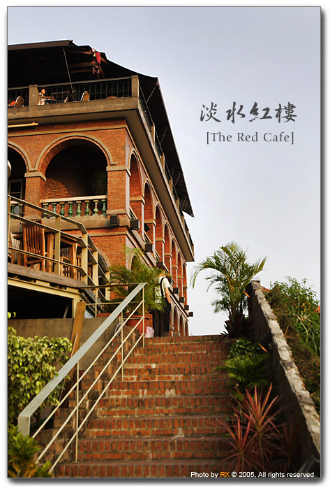 艷陽高照的淡水,ㄧ路走來始終如一的想著吹冷氣與吃冰,興致高昂的隊長卻一直滔滔不絕還加上勇往直前,真是要命啊。終於到了紅樓,這是計畫中休息喝冷飲的地方,重擔才有機會放下。