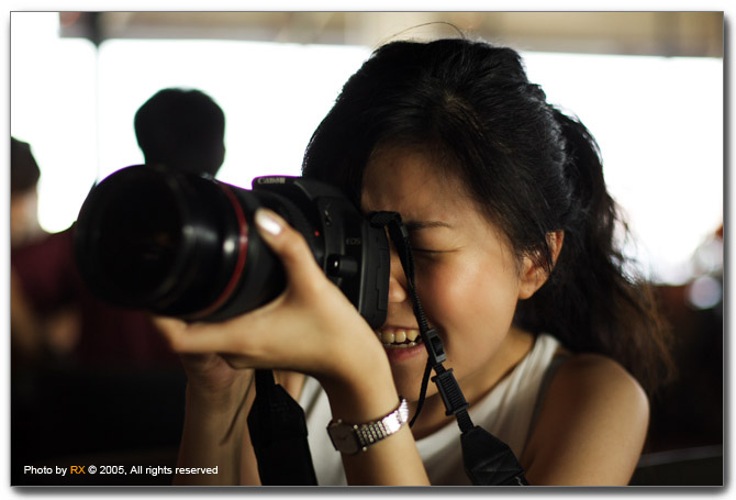 吃飽喝足的攝影同好話題當然是圍繞著相機與鏡頭。Sylvia捧著剛入手EOS 350D掩不注興奮,藉著24-70 2.8L 試拍,小巧的相機接上龐然大物,一種說不出的不協調的感覺。