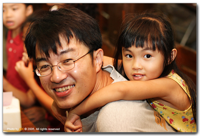 看起來很花的志豪也有ㄧ個寶貝女兒了,算是我們同梯中最早結婚的一個,令人訝異的是看似放蕩不羈的志豪,對於女兒可是無微不置的照顧,亦步亦趨的跟在女兒背後,跌破大家眼鏡的扮演趁職父親的角色,不知道對老婆是否也是這樣疼愛。