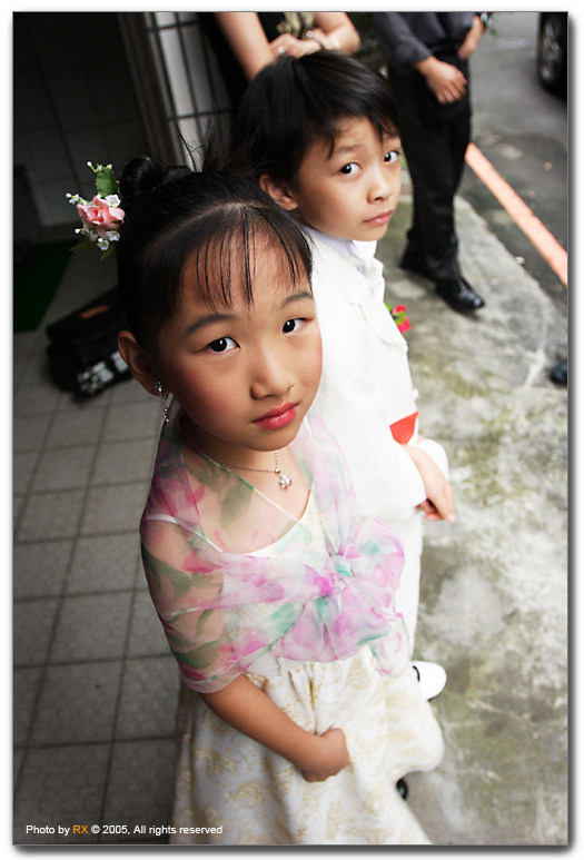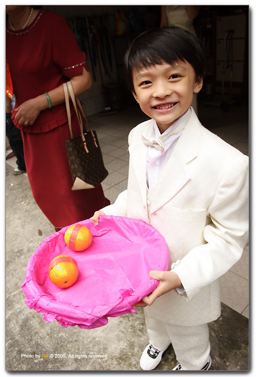 完成迎娶新娘到夫家任務,大門口迎接的是媒婆與小花童,手捧柳丁應該是取其「添丁」之意。等待的同時,所有BK朋友都開始想當年,炫耀自己以前也是紅牌花童,果然男人年近四十,除了一張嘴只剩當年勇囉。