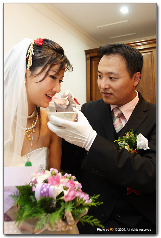 難得露出溫柔ㄧ面的BK輕輕餵著新娘甜湯,忙著拍照的我只聽到.... 「甜湯喝何撘,明年生ㄧ個懶趴」。沒錯,眾親友都在催促這一對新人加速生產,明年一定要趕一個小雞雞出來報效國家。