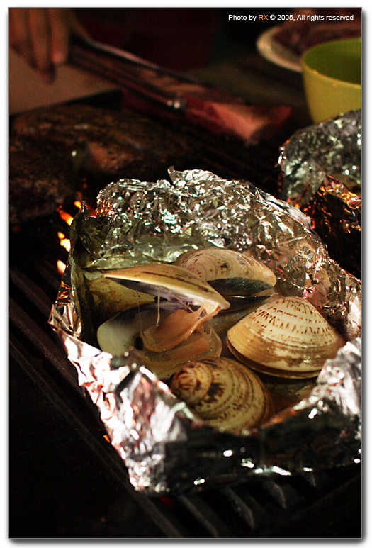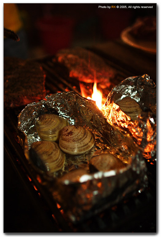 Leo媽宣稱買了六斤蛤仔,這算是正式燒烤前的熱身活動,包著錫箔紙小心翼翼不讓珍貴湯汁流出,烤爐的火焰也慢慢的越來越旺。