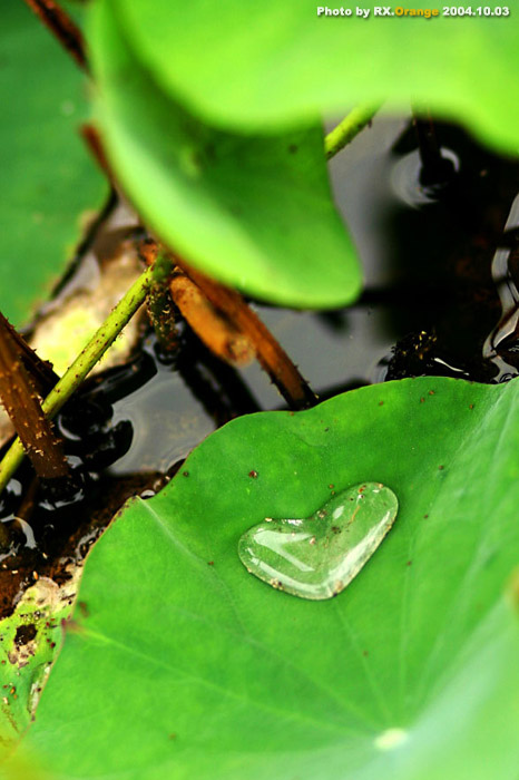 拍了一年多的照片,器材也像軍備競賽一樣突然間住滿我了防潮箱,大軍之中唯讀缺少了Marco微距鏡,說穿了其實我對生態攝影沒有很大興趣,也不想無限制的延伸我的攝影領域,把錢包的洞越挖越大。這張是攝影課植物園外拍時候偶然發現的景象,一個天然的愛心型水滴,我按下了快門留下這個符號,一個愛情的平安符。攝影筆記:老師抱歉喔,我在植物園都沒有好好拍,真的對生態沒興趣.......。