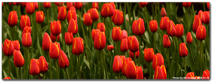 「走吧,我們去拍鬱金香!!」 真是窮極無聊的Joe攝影團, Joe、Peggy、阿Q與我四人, 假日沒事跑去桃源仙谷遠征, 為了是心中那片憧憬的鬱金花海。 很榮幸的我搭上了阿Q的高級豪華Toyota Altas, 驗證了廣告都是騙人的, 不然就是阿Q的技術爛到爆, 號稱下坡道王子的我竟然暈車........。 付了昂貴的門票費用後, 興致勃勃的衝往花園, 與我原先幻想的花海真的有很大出入, 失落感加上相機的重量真的會讓人沒勁, 只好拍個幾張利用構圖創造花海的假象, 回去騙些笨蛋來重蹈覆轍。 (攝影筆記:我最喜歡這紅鑲黃的鬱金香,慢慢琢磨一個角度,可惜回來後還是與印象中的鬱金香有點差別,下次到遠征荷蘭拍吧) (Canon 20D + Canon 70-200mm F2.8L, @120mm F8, 1/200 Sec. -1, ISO 100) |