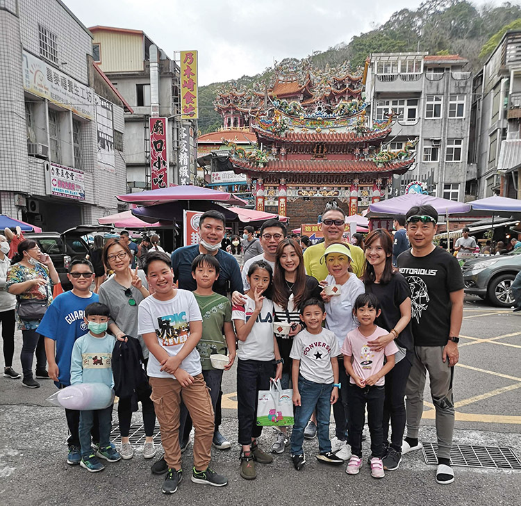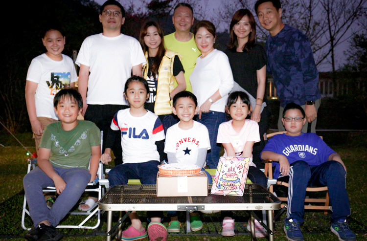 赫赫夫人(後排左一)走網美風,帶來野餐墊在樹下趁著陽光來張樂活生活照