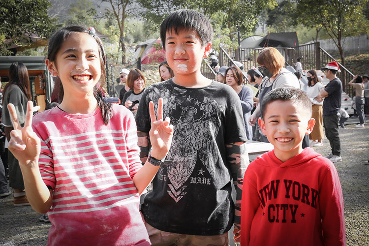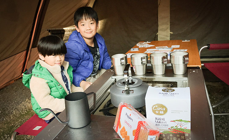 早晨照例從一杯手沖咖啡開始,愉悅的心情、舒服的天氣配上美麗的風景,就能讓便宜的耳掛咖啡擁有咖啡大師沖泡的感覺,每一口都是大大的滿足啊。小朋友起床後也不用招呼,看到跳床與溜滑梯就玩起來了,等到十點領到第一個活動項目--- 耶誕帽DIY開始,我們家小朋友的情緒就被一個又一個的活動推到最高點,雖然參加前已經知道豪哥會安排很多活動,但豪哥對活動安排的用心,讓周六的下午與夜晚充滿歡笑,給大人小孩們一個完美的耶誕節,Ho Ho Ho……。現場還安排了許多餐車,提供點心與正餐的服務,我的下午茶就被雞蛋糕、章魚燒與披薩一棒接一棒塞滿,等待參加晚上重頭戲「耶誕老公發禮物」與「交換禮物」。
