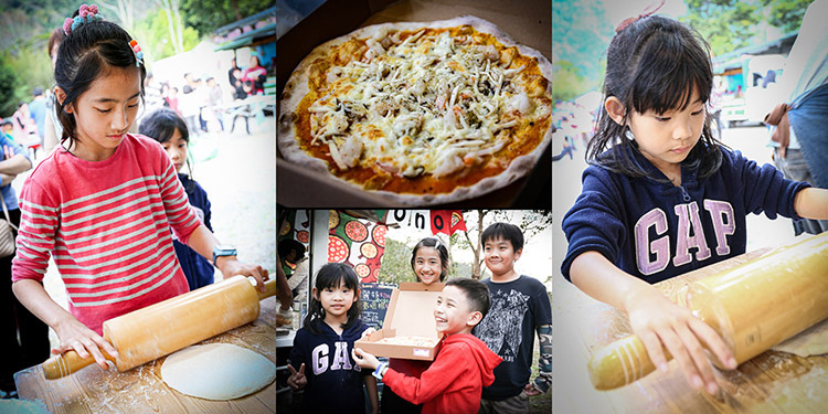 還有親切的巴諾Buono手工窯烤披薩 賢伉儷~ 特地安排讓小朋友DIY,桿麵團桿到地老天荒