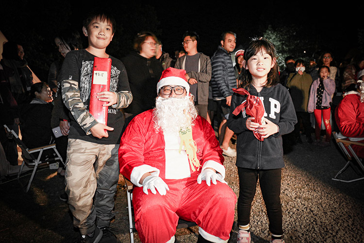 露營餐點逐漸走向極簡風,目前與吃泡麵大概只隔了一層紗,本次露營還算有心準備了火鍋,沾著沙茶醬任何東西都覺得很好吃...... 大人忙著吃飯,小孩可是翹首盼望耶誕老公公快點來發禮物,這次豪哥特地找來兩個身材很適合扮Santa的男子,從塞滿禮物的豪華熊帳裡面出來,在尖叫聲中開始一一唱名發禮物,跟耶誕老公公合照~ 每個小朋友都收到父母精心準備的禮物,歡笑聲源源不絕從每個帳篷中傳出來。緊接著小朋友的交換禮物時間上場,這個就必較刺激了... 每個小朋友手上拿著價值約300元的禮物,在豪哥的指揮下往前傳、往後傳....... 傳來傳去下好離手,每個人都飛奔回去帳篷拆禮物,真的幾家歡樂幾家愁~ 大朋友抽到準備給小朋友的禮物就一臉大便,隨手就轉送給小小朋友,然後拿著SWITCH尋找安慰,交換禮物遊戲最大贏家就是幼稚園階段的小朋友們。我沒有參加大人的交換廢物活動,因為晚上另一個亮點是行動調酒車- AK Mobile Bar ,不喝酒的我特地請老闆調配一杯無法醉人的特調,在淡淡的荔枝香味中準備結束快樂的耶誕露營夜。