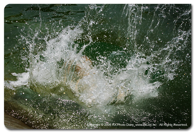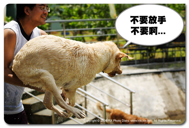 要當國際巨星門檻越來越高,現在已經不流行文藝愛情片,為了生活布丁必須要轉型成為動作巨星,跟「誰鬼奇航」的導演毛遂自薦,爭取海盜船長的角色...。 導演要求不能靠替身上陣,劇中有許多高空跳水的場面都得自己上陣,因次布丁只得乖乖接受安排,第一個上場的就是恐怖的深水炸彈訓練。 這到底有多恐怖,在特技指導一聲令下,布丁被工作人員抱起... 嘴裡數 1.. 2... 3! 就往水裡拋 照片雖然很多張,可是那只是一瞬間,巨星布丁就被丟到水中激起浪花片片。 後來布丁還是沒有這部片子,為了能夠多活幾年 很委婉地藉口編一編就烙跑了,根據線民情報... 布丁接演卡通改編的「龍龍與忠狗」,在劇中拉拉牛奶車混飯吃。 |