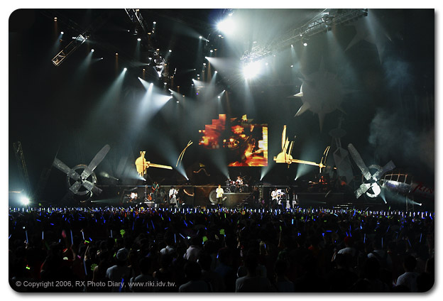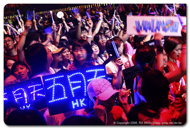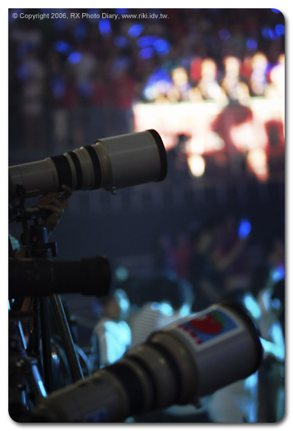 凡事都有第一次... 而第一次總是很痛的 今晚第一次到小巨蛋拍演唱會,真是碰到超級大的挫折...有史以來舞台拍攝最大的挑戰。除了場管單位-超級圓頂不好搞、訂了一大堆奇怪的規矩,阻擋了先前好幾次的拍攝機會,一直到這次的五月天演唱會才有機會前往小巨蛋一窺究竟。今天的主辦單位對於攝影記者還是立下了很多規矩,第幾首開始才能開始拍... 舞台前只能拍到第幾首,然後必須退到場中央媒體區... 在某首歌後媒體就必須停止拍攝〔但是可以繼續留著聽〕。 這些都算是小事,讀者們可知道媒體區到舞台距離有多遠?沒有大砲就等於死刑... 演唱會開始前的媒體休息室,我見到現場出現兩支600mm大砲,那時候心理就開始涼了... 怎辦?好歹手中也是拿著300mm中砲,硬著頭皮也要拍下去 接下來幾天的五月天演唱會連載,讀者們就可以看到硬拍的成果囉... 這次舞台蠻炫的,本篇預告篇就給網友們吊吊胃口吧... 待續! p.s. 本場有特別來賓金曲歌王-蓋世英雄喔,看在他的面子上就請大家耐心等囉。 |